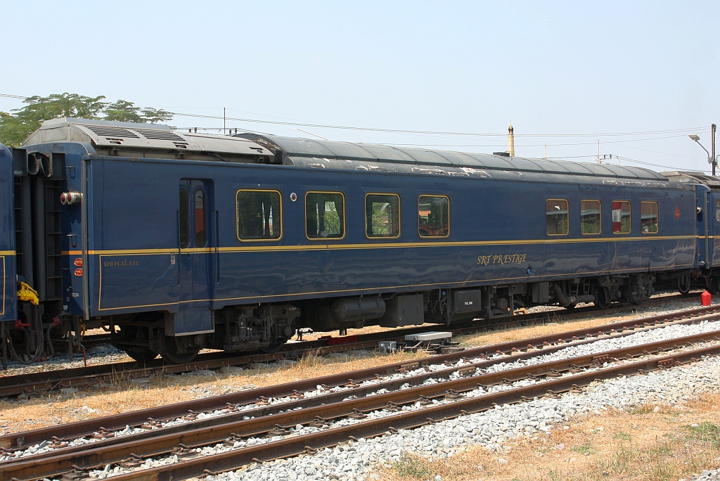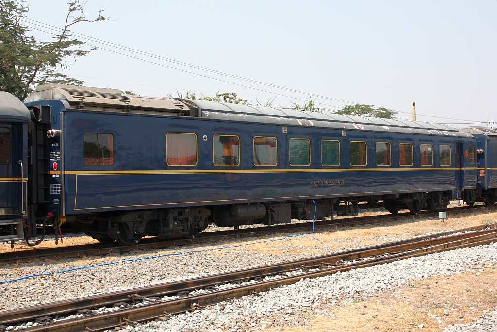 บนอ.ป.1015 (บนอ.ป.=ANF./Air-Conditioned First Class Day & Night Coach, Baujahr 1997, Hyundai/Korea) am 22.Februar 2026 eingereiht im "The Blue Jasmine" Special Privat 951 (Hua Lamphong - Nakhon Sawan) in der Ayutthaya Station.