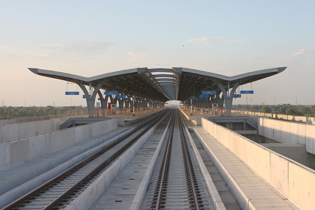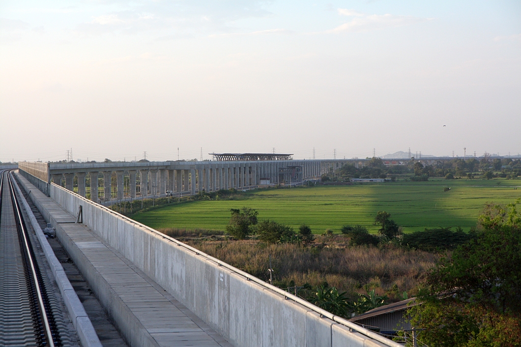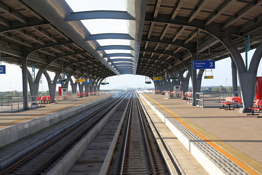 Fußgängerübergang zur SRTET Bang Sue Grand Station (RN01/RW01) am 01.Mai 2022. Links erkennt man das südliche Ende der SRT Bang Sue Junction.