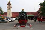 Nach Aufarbeitung im Makkasan Workshop sind die 61 (C-n2, Brush, Bauj. 1910, Fab.Nr. 322), 54 (C-n2, Henschel, Bauj. 1910, Fab.Nr. 9359, geliefert für 1435mm Spurweite, 1926 umgespurt auf 1000mm), 165 (2'C, NBL - Hyde Park, Bauj. 1912, Fab.Nr. 19971) und 336, ex RhB 123 (1'D-h2, SLM Winterthur, Bauj. 1913, Fab.Nr. 2332) nun als historisches Erbe in der Hua Lamphong ausgestellt. - Bild vom 10.Dezember 2023.