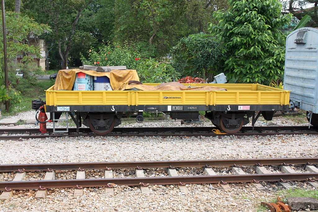Nummernloser Bauzugwagen (Geismar Type R10) am 03.Mai 2022 in der Chachoengsao Junction.