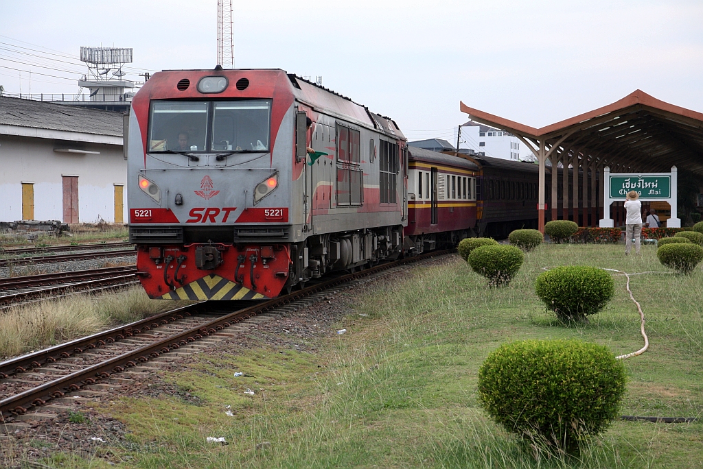 QSY 5210 (Co'Co', de, CRRC Qishuyan, Bj.2021) fährt am 23.Februar 2026 mit dem Exp 52 nach Krung Thep Aphiwat aus der Chiang Mai Station.