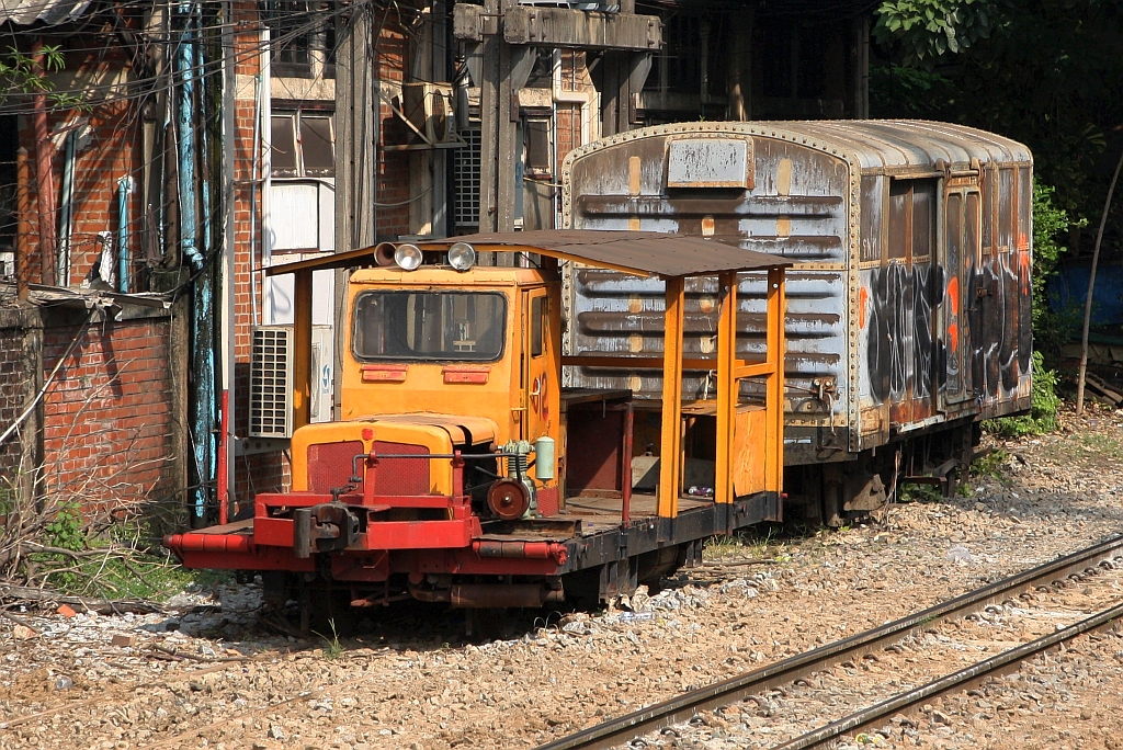 SRT รบน.022, ein meterspuriger Oberbauwagen der deutschen Type Klv51, am 22.März 2025 in der Den Chai Station.
