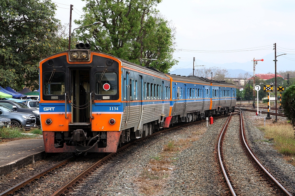 LOC 408 (Chiang Mai - Nakhon Sawan) mit dem THN 1134 als letztes Fahrzeug fährt am 25.Februar 2026 aus der Den Chai Station.