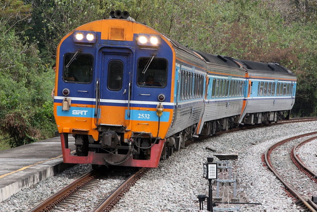 SpExp 7 (Krung Thep Aphiwat - Chiang Mai) mit dem APD.60 2532 als erstes Fahrzeug am 25.Februar 2026 in der Kaeng Luang Station.