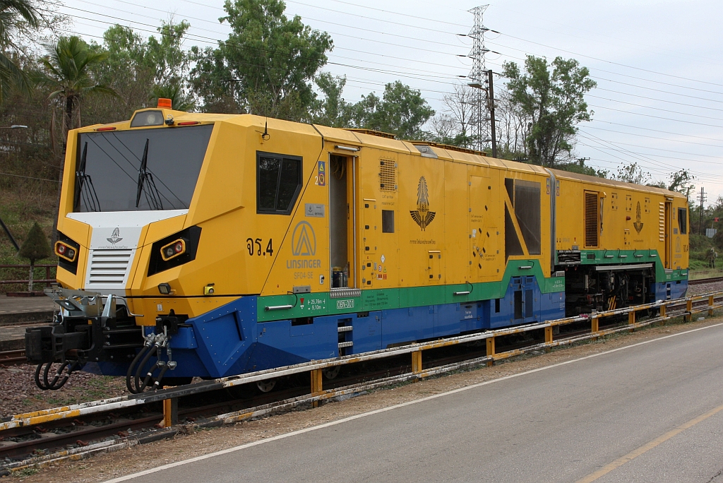 SRT จร.4 (จร. = RRTM/Rail Road Truck Milling, Hersteller: Linsinger / Austria, Type SF04-SE, Baujahr: 201?, Fab.Nr.: ???) am 25.Februar 2026 in der Mae Mo Station. Karl Seltenhammer