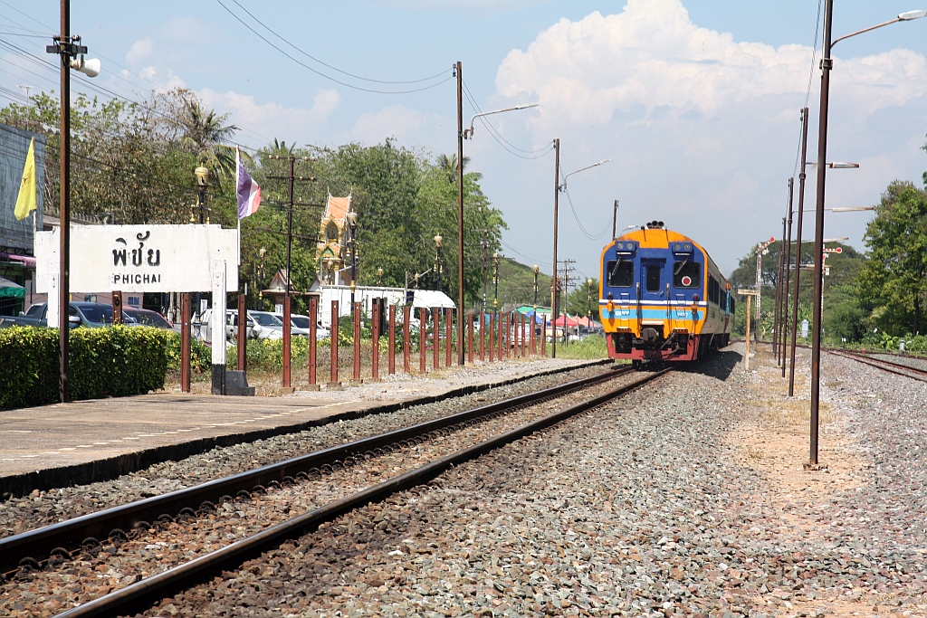 Sp.Exp 7 (Krung Thep Aphiwat - Chiang Mai) mit dem APD.60 2537 als letztes Fahrzeug fährt am 27.Februar 2026 durch die Phichai Station.