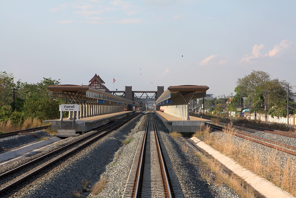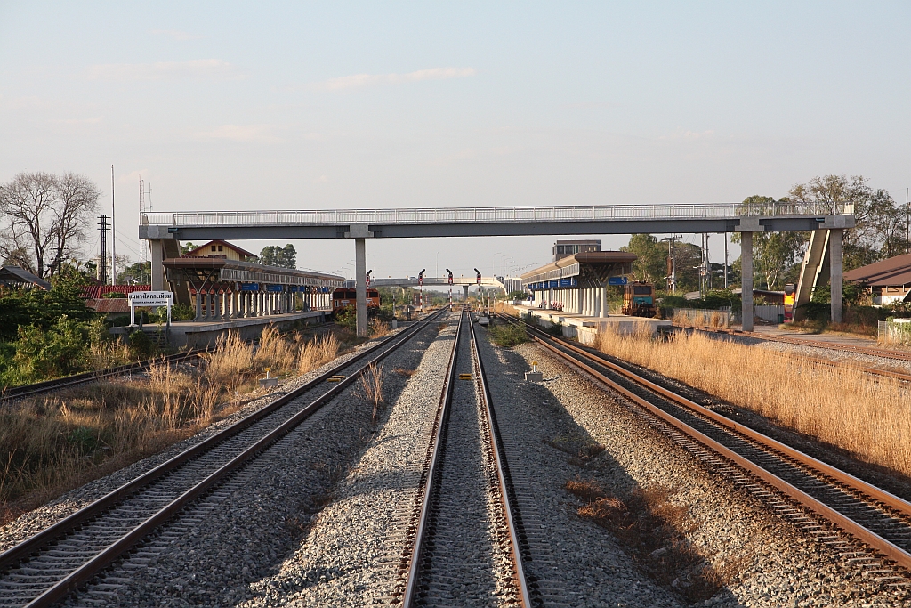 Im Rahmen des aktuellen Modernisierungsprogram der SRT wurde beim zweigleisigen Ausbau Lop Buri - Pak Nam Pho auch die Ban Takhli Station neu errichtet. - Bild vom 27.Februar 2026.