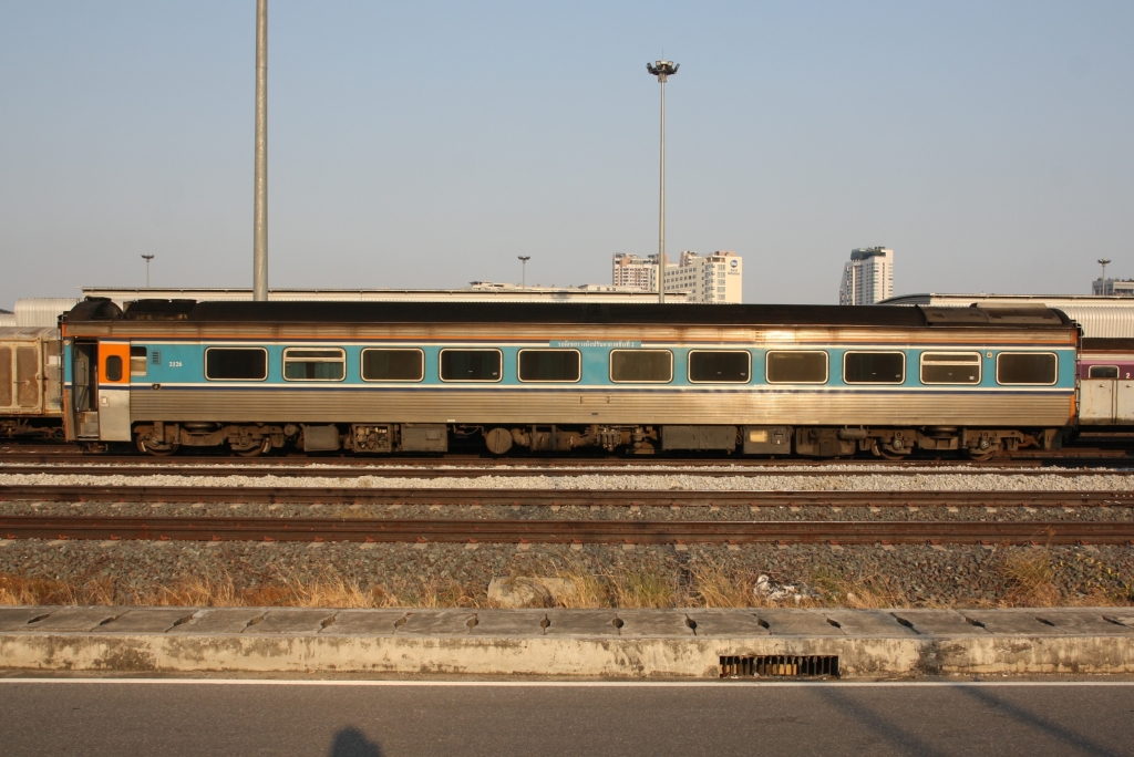 Zu den 12 Triebwagen APD.20 (SRT-Nr. 2513 - 2524) wurden von Daewoo Heavy Industries 1995 auch 8 Triebwagen ohne Führerstand (SRT-Nr. 2121-2128) geliefert. - Das Bild zeigt den, im SP EXP DRC 12 von Chiang Mai nach Bangkok eingereihten APN 2127 am 14.März 2012 in der Phitsanulok Station.