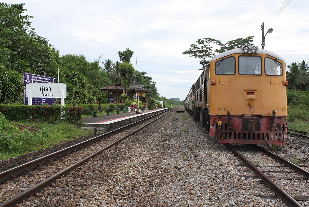 Nachdem der LOC 446 am 07.Dezember 2023 nach der Kreuzung mit dem SP EXP 43 die Thung Kha Station verlassen hat wird die Einfahrweiche wieder in Grundstellung gebracht.
