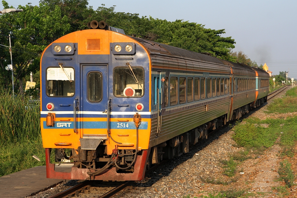 Sp.EXP 40 (Surat Thani - Krung Thep Aphiwat) mit dem APD.20 2514 als letztes Fahrzeug fährt am 24.März 2024 aus der Sala Ya Station.