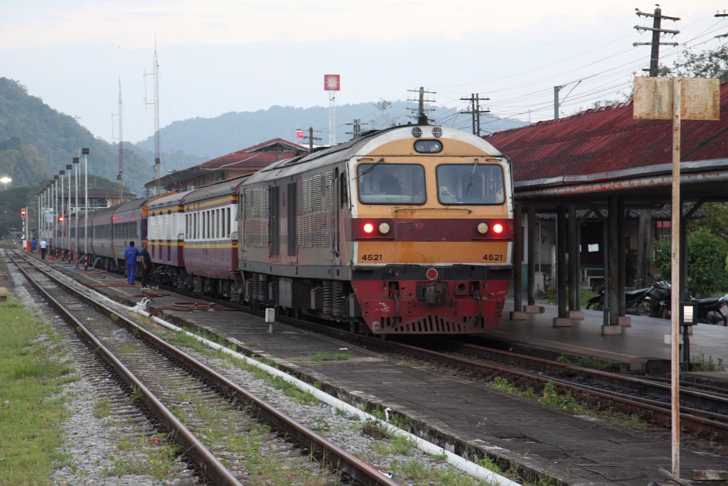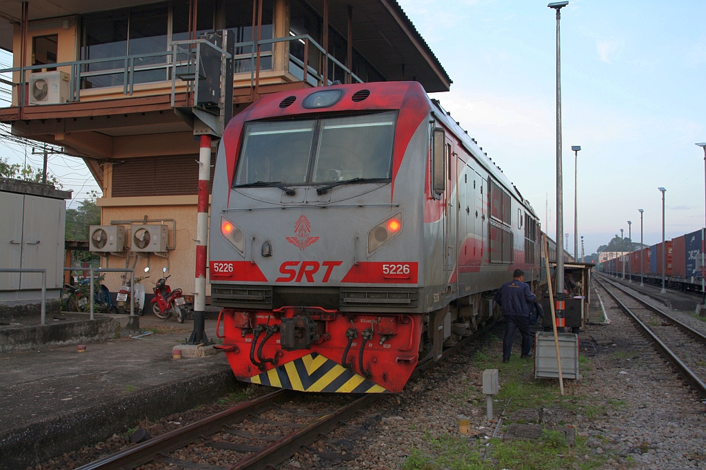 บชส. 1009 (บชส. =BTC./Bogie Third Class Carriage, Teikoku Sharyo - Japan, Baujahr 1966) am 15.Jänner 2026 als letztes Fahrzeug des Exp 86 (Nakhon Si Thammarat - Krung Thep Aphiwat) in der Thung Song Junction.