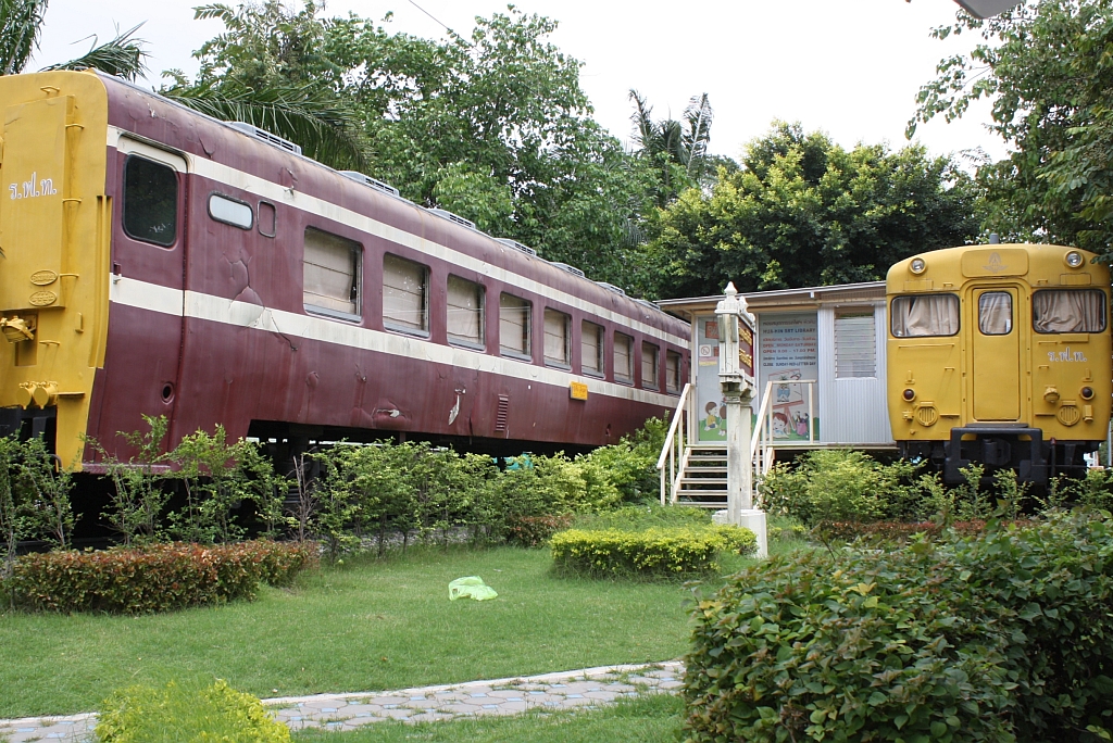 Die äußeren Aufarbeitung der Triebwagentype กซข. (USKH.) im Bf. Kantang erfolgt unter in unseren Breiten kaum vorstellbaren Umständen, und trotzdem sind die Beteiligten gut gelaunt. 25.Oktober 2010.