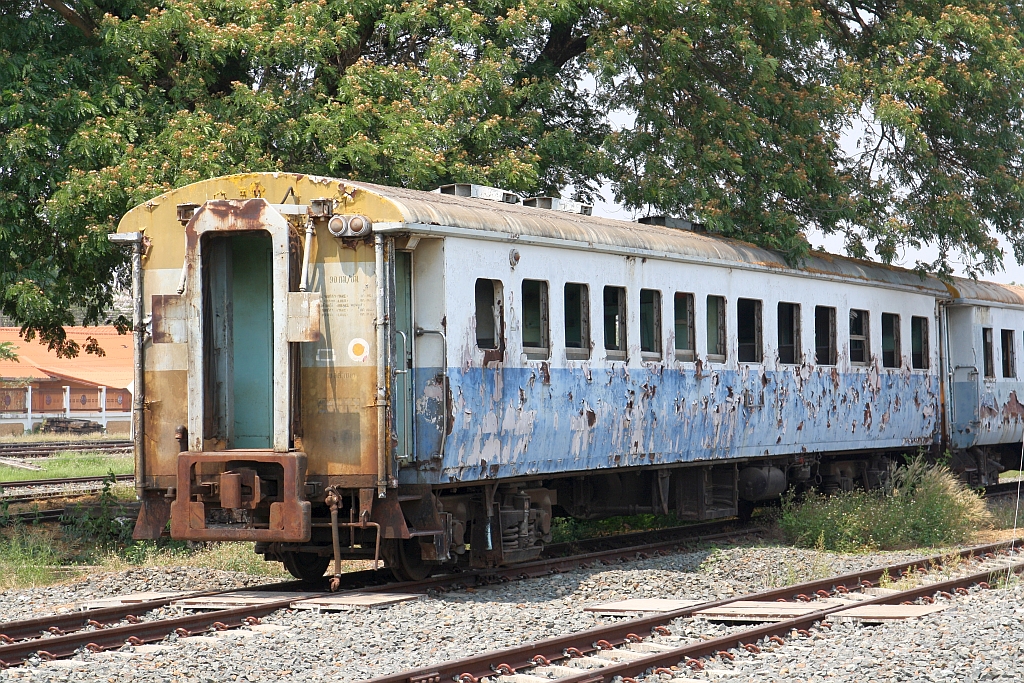 บสส. 33 (บสส.=BST./Bogie Second & Third Class Carriage) als vorletzter Wagen des ORD 276 von Aranyaprathet nach Bangkok am 24.März 2017 im Bf. Klong Sip Kao.