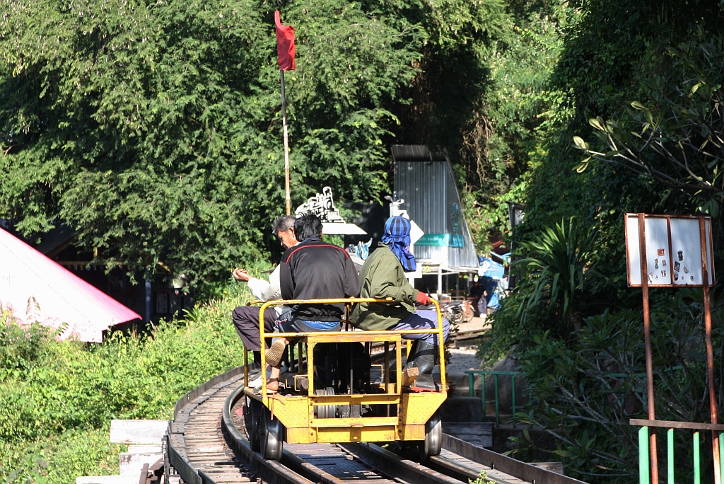 Innenansicht des nicht klimatisierten 3. Klassewagen บชส.1076 (บชส.=BTC =Bogie Third Class Carriage), eingreiht im RAP 167 (Bangkok - Kantang). Aufgenommen am 25.Oktober 2010 während der Fahrt zwischen Trang und Kantang.