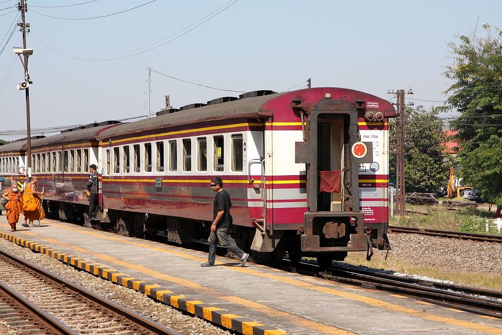 Blick in den บชส.268 (บชส. =BTC./Bogie Third Class Carriage) während der Fahrt mit dem ORD 445 am 24.August 2011 zwischen den Bahnhöfen Khlong Chan-Di und Lak Chang.