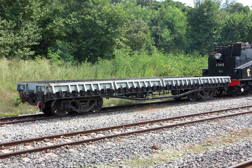 บ.ข.น.28 (บ.ข.น. =B.F.H./Bogie Heavy Flat Wagon, Fuji Car Mfg.Co.Ltd. - Osaka-Japan, Bauj. 1954) am 13.März 2012 im Bf. Lopburi.