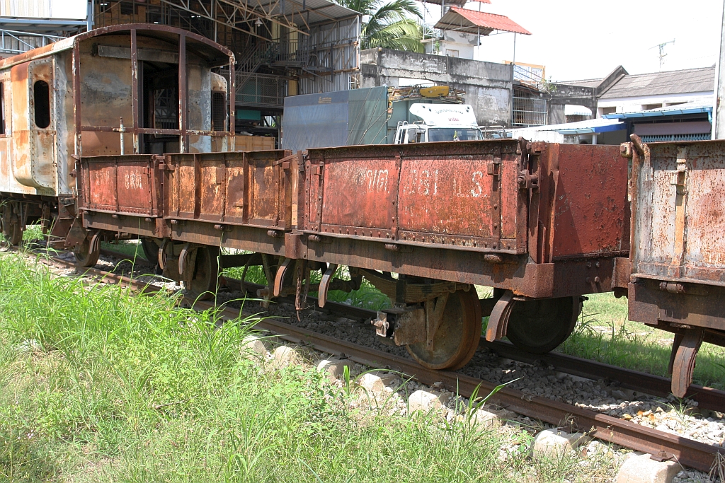 ข.ต.1487 (ข.ต. =L.S./Low Sided Wagon, Baume et Marpent Ste.Ame., Haine St.Pierre/Belgique, Bauj. 1952) am 18.Mai 2013 im Bf. Chumphon.