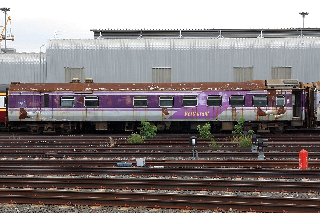 Ein Wagen der Serie ร.ส. 306 - 355 (ร.ส.=C.W./Cattle Wagon, Kinki Sharyo, 1957) steht ausgemustert und bereits verkauft (Losnummer 436) am 13.Mai 2012 in Phahon Yothin Yard.