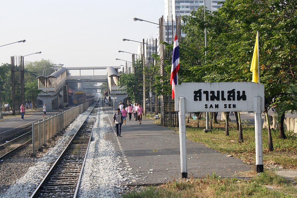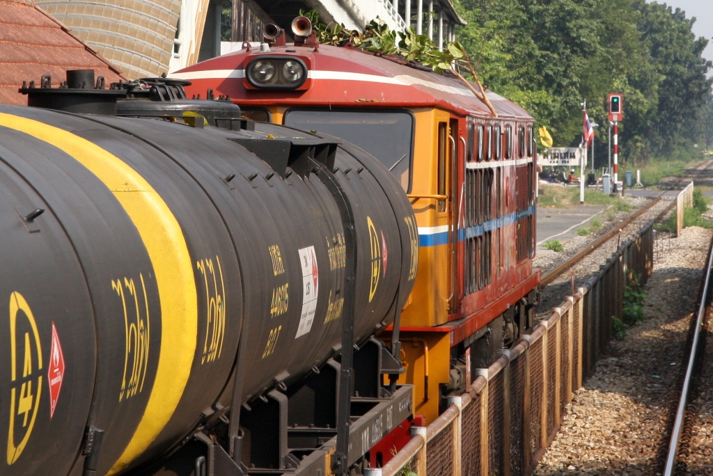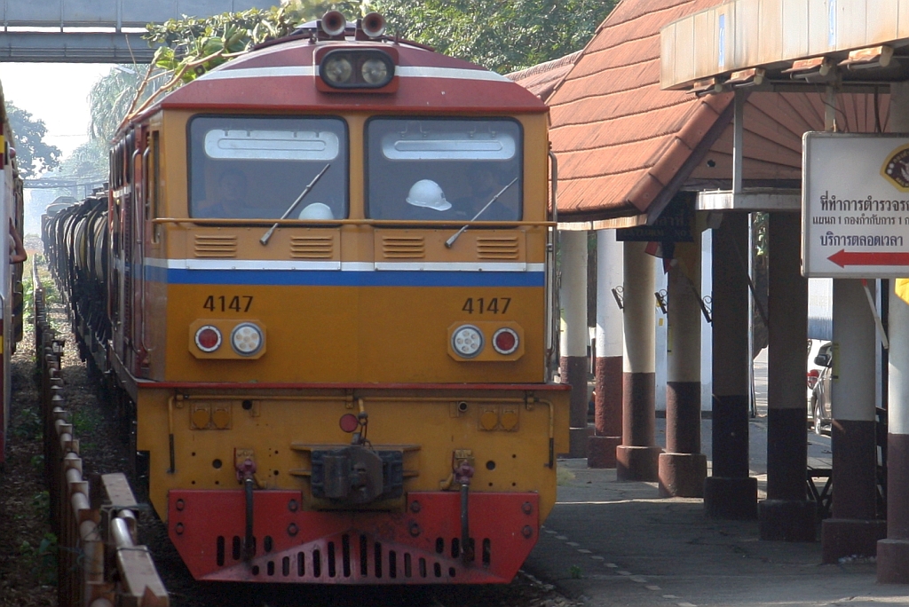 บ.พ.ห.500?? (บ.พ.ห.= B.B.V./Bogie Brake Van) am 10.Dezember 2023 als letztes Fahrzeug eines Kesselwagenzuges in der Sam Sen Station.