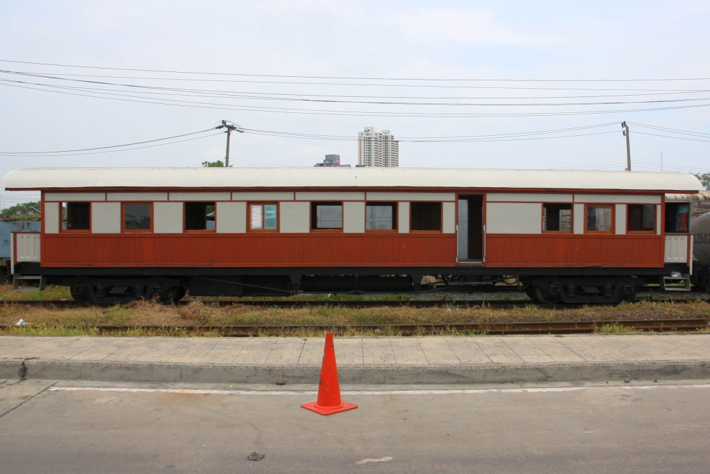 Ohne Fahrzeugnummer, Fabriksschild und Inneneinrichtung steht dieser offensichtlich von Cravens Railway Carriage & Wagon Company/Sheffield (Bauj. 192?) gebaute Wagen in der Thon Buri Station. - Bild vom 28.Mai 2025.