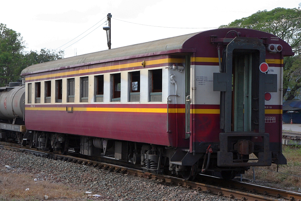 บชส. 1030 (บชส. =BTC./Bogie Third Class Carriage; die BTC. 1027 - 1132 wurden von 1968-1973 im Workshop Makkasan hergestellt) am 22.Februar 2026 eingereiht im "The Blue Jasmine" Special Privat 951 (Hua Lamphong - Nakhon Sawan) in der Ayutthaya Station.