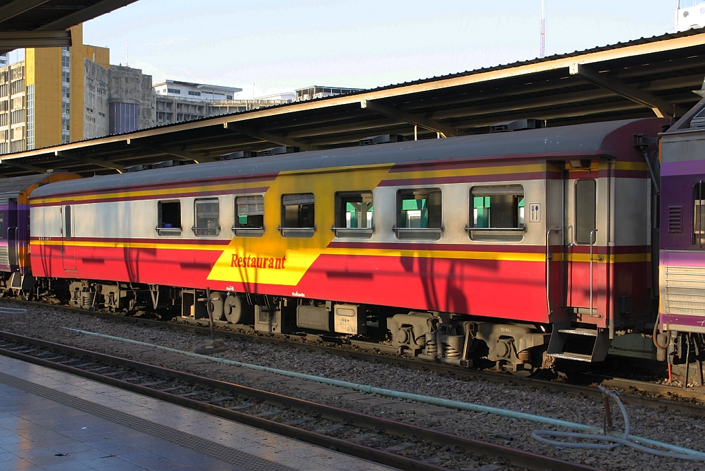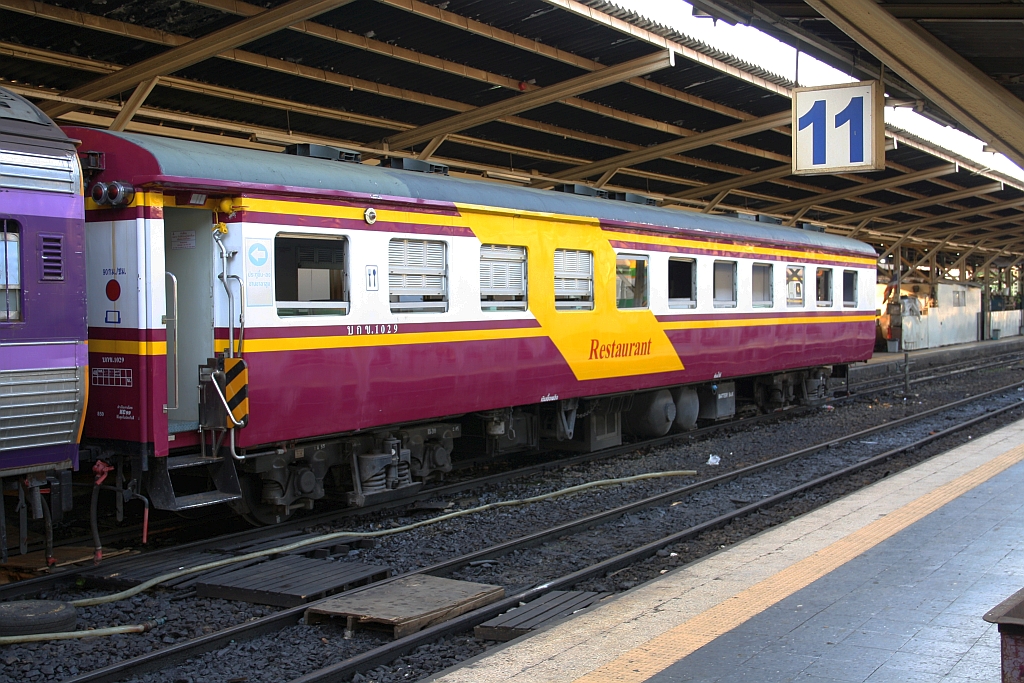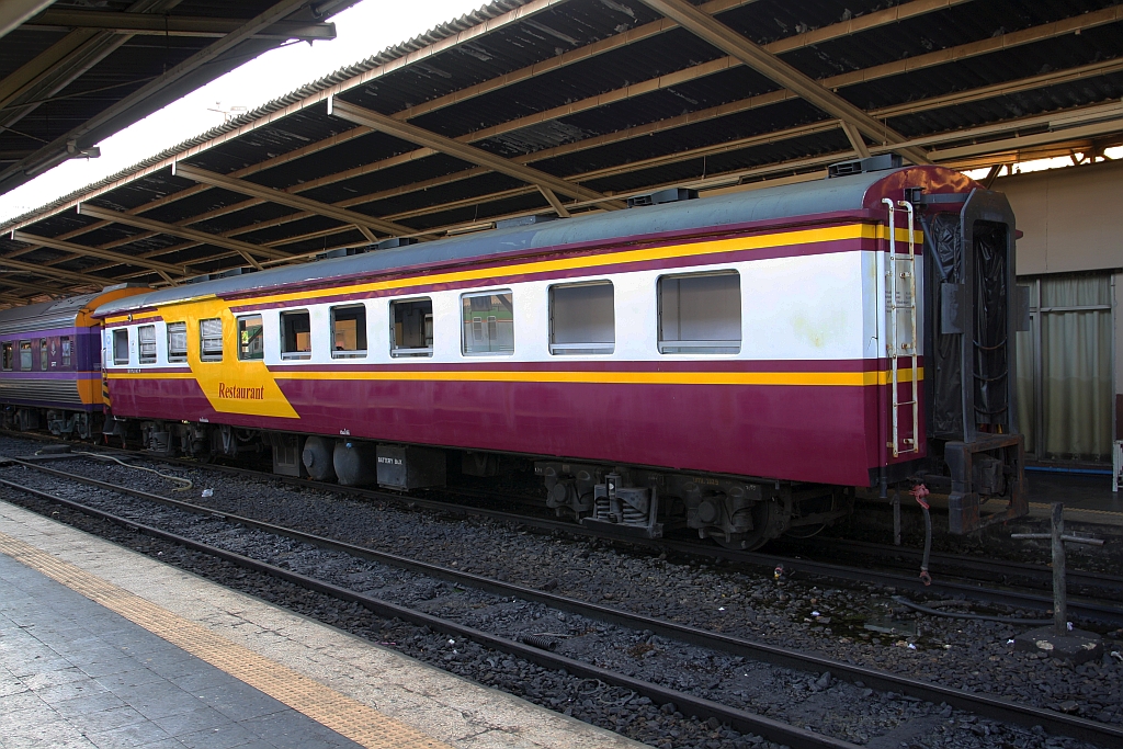 บกข. 1007 (บกข. =BRC./Bogie Buffet Carriage, Bogie Restaurant Car) am 27.März 2017 im Bf. Hua Lamphong.