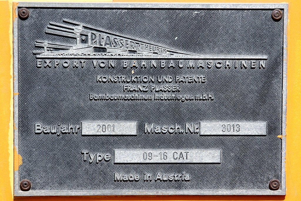Fabriksschild der SRT อน.21 (อน.=TM./Tamping Machine) eine Gleisstopfmaschine der Type 09-16 CAT. - Bild vom 05.Dezember 2024 in der Chachoengsao Junction. Karl Seltenhammer