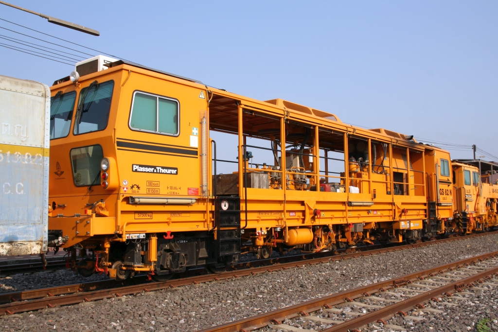 Fabrikschild des SRT บสน.6, ein Dynamischer Gleisstabilisator (Plasser & Theurer, Type DGS 62 N, Baujahr: 2017, Fab.Nr.: 6615) aufgenommen am 26.März 2025 in der Ayutthaya Station.
