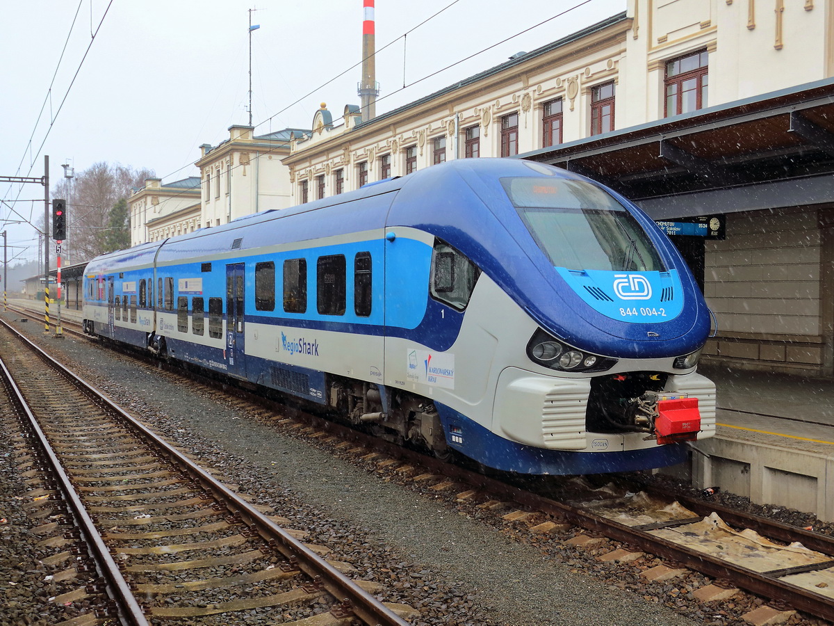 844 004-2 steht im Bahnhof von Marienbad am 26. Februar 2020.