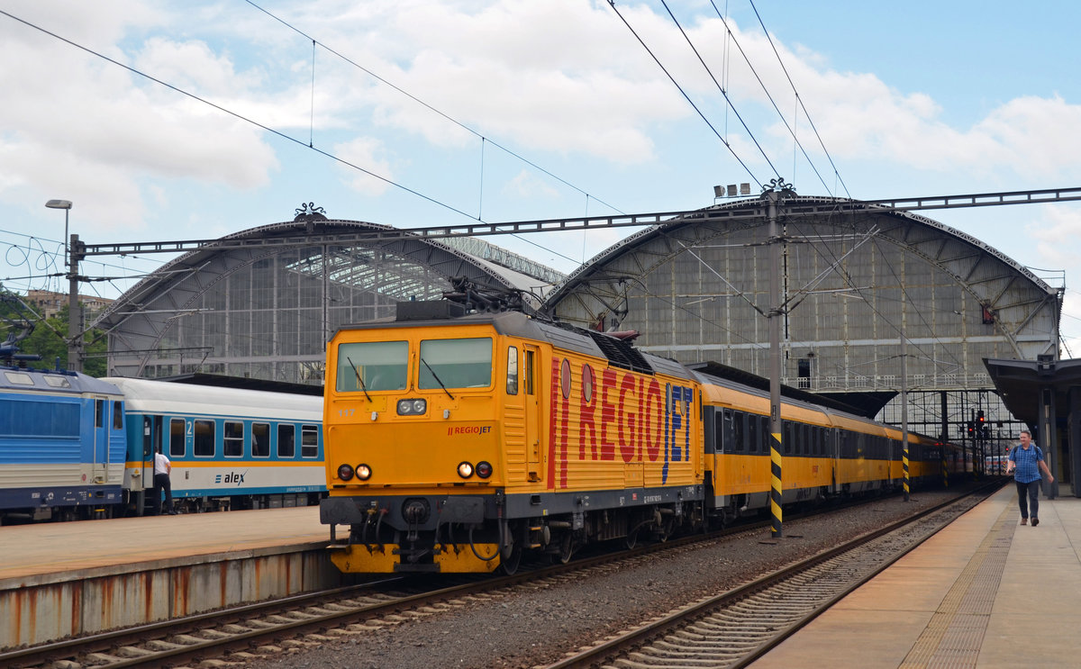 162 117 verlässt mit dem Regiojet 1011 nach Zvolen Osobna Stanica den Hbf Prag.