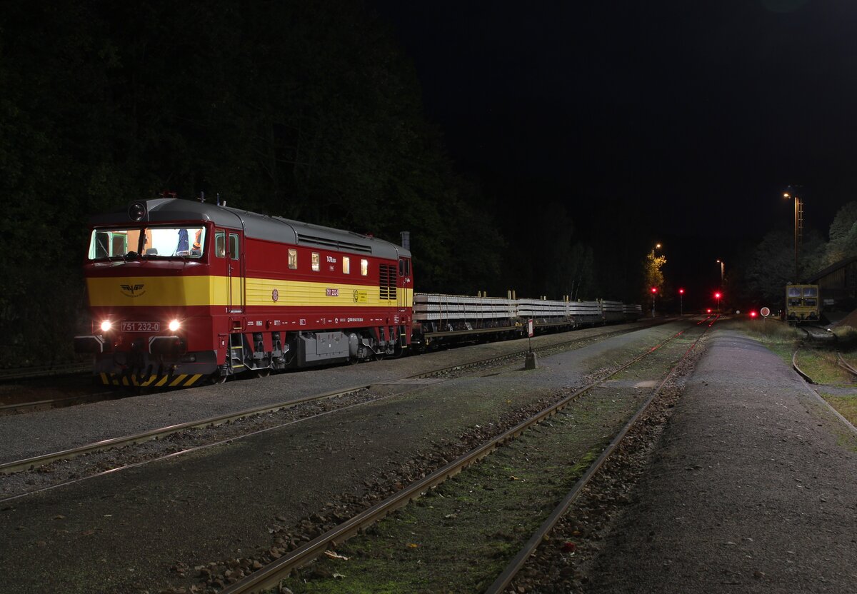 751 232-6 (VDA) war am 05.10.25 mit einem Bauzug in Teplice nad Metují zu sehen.