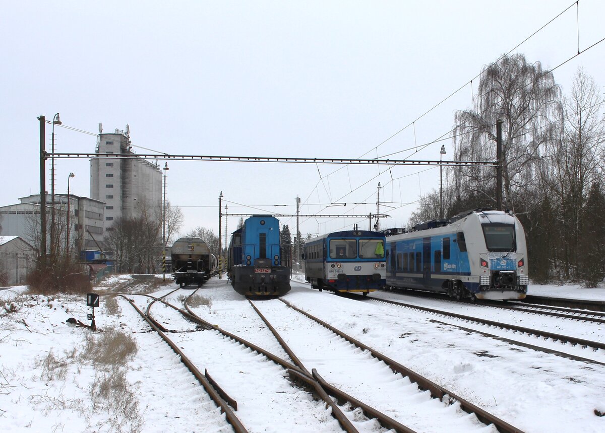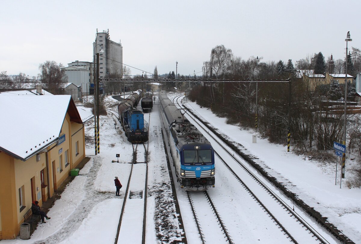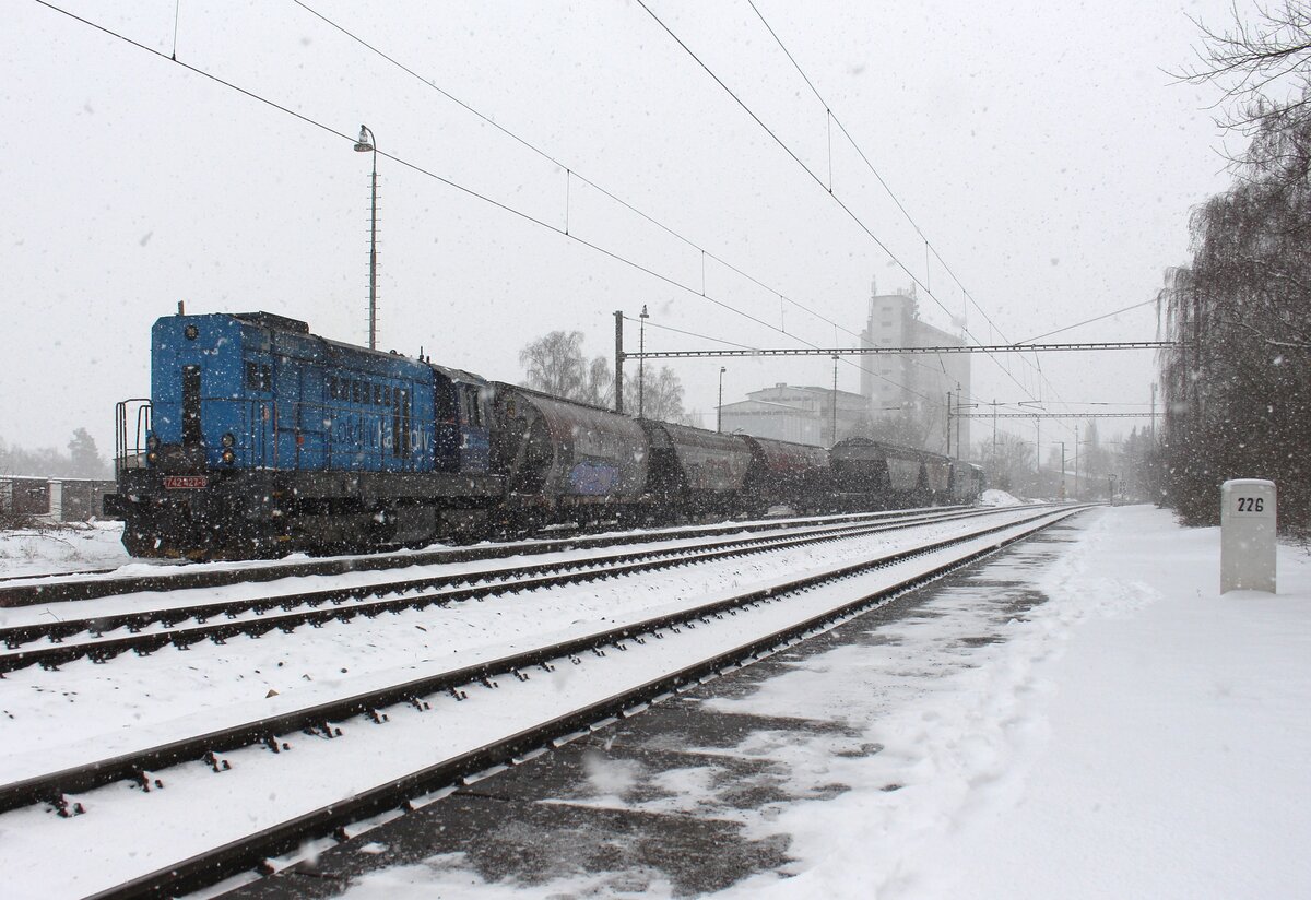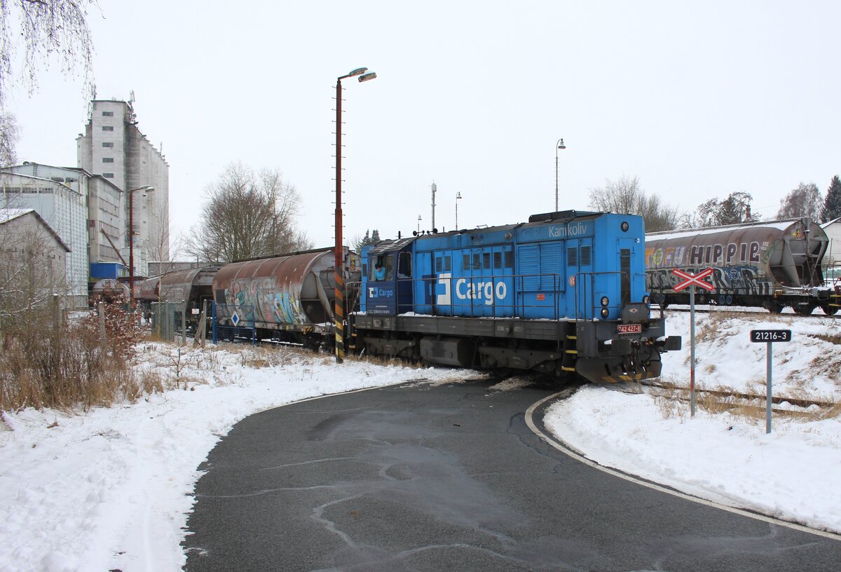 PN 52561 mit 742 419 bei der Einfahrt nach Becov nad Tepla mit dem dortigem Schloss im Hintergrund. am Haken 12 leere Rungen bzw auch Eas. Aufgenommen am 22.4.2022