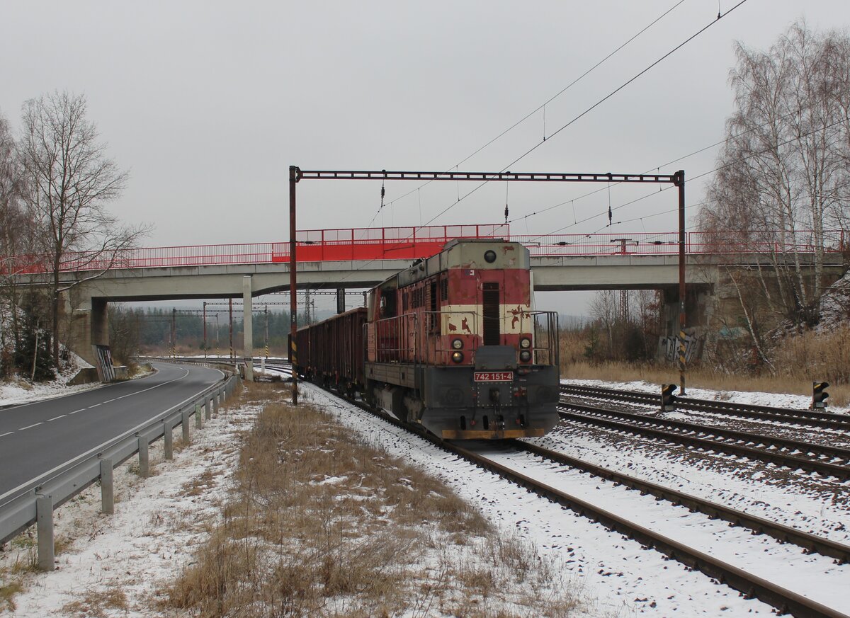 742 151-4 zu sehen am 25.11.25 mit einer Übergabe bei Dolní Rychnov.