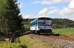 720 509-9 fuhr am 07.06.25 von Rakovnik nach Bochov. Der Grund für meinen Besuch dort war. Auf dem Streckenabschnitt zwischen Protivec und Bochov findet kein planmäßiger Personenverkehr mehr statt. 720 509-9 als Os 93142 ist hier in Chyše zu sehen.