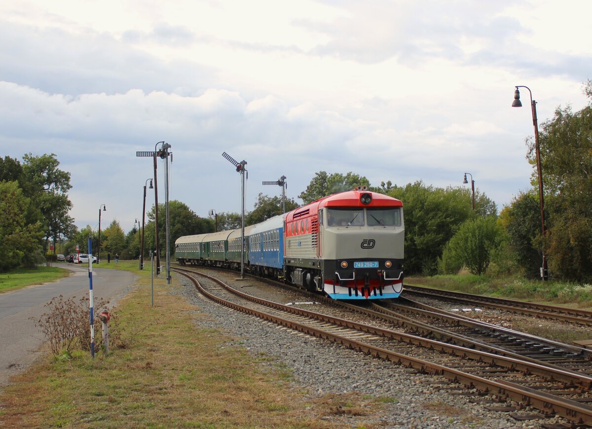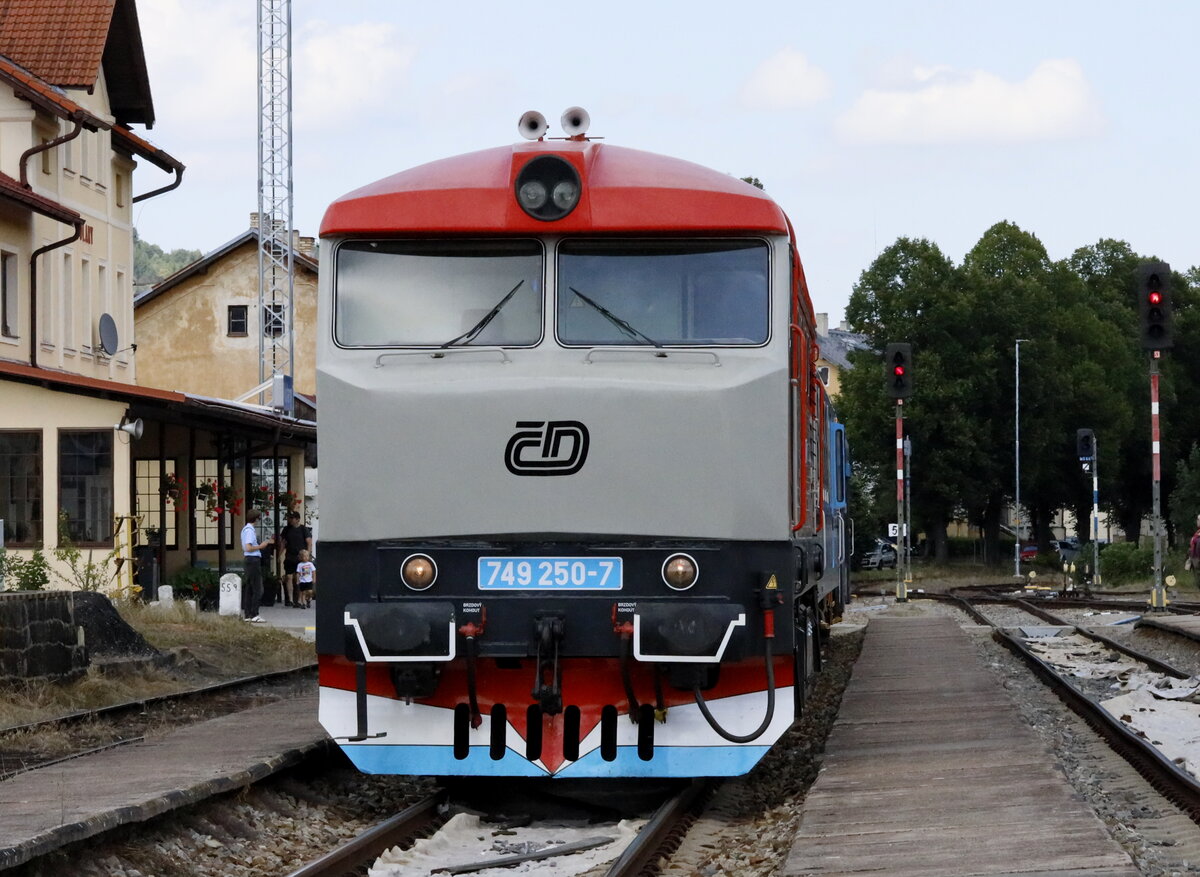 Šumavské léto s párou 2025 na Volarsku Železniční trať České Budějovice – Černý Kříž. Strecke 194, die Bardotka hier in Volary wartendend, brachte einen Sonderzug nach Kubova Huť (deutsch Kubohütten) eine Gemeinde in Südböhmen im Stadtkreis Prachatice.
