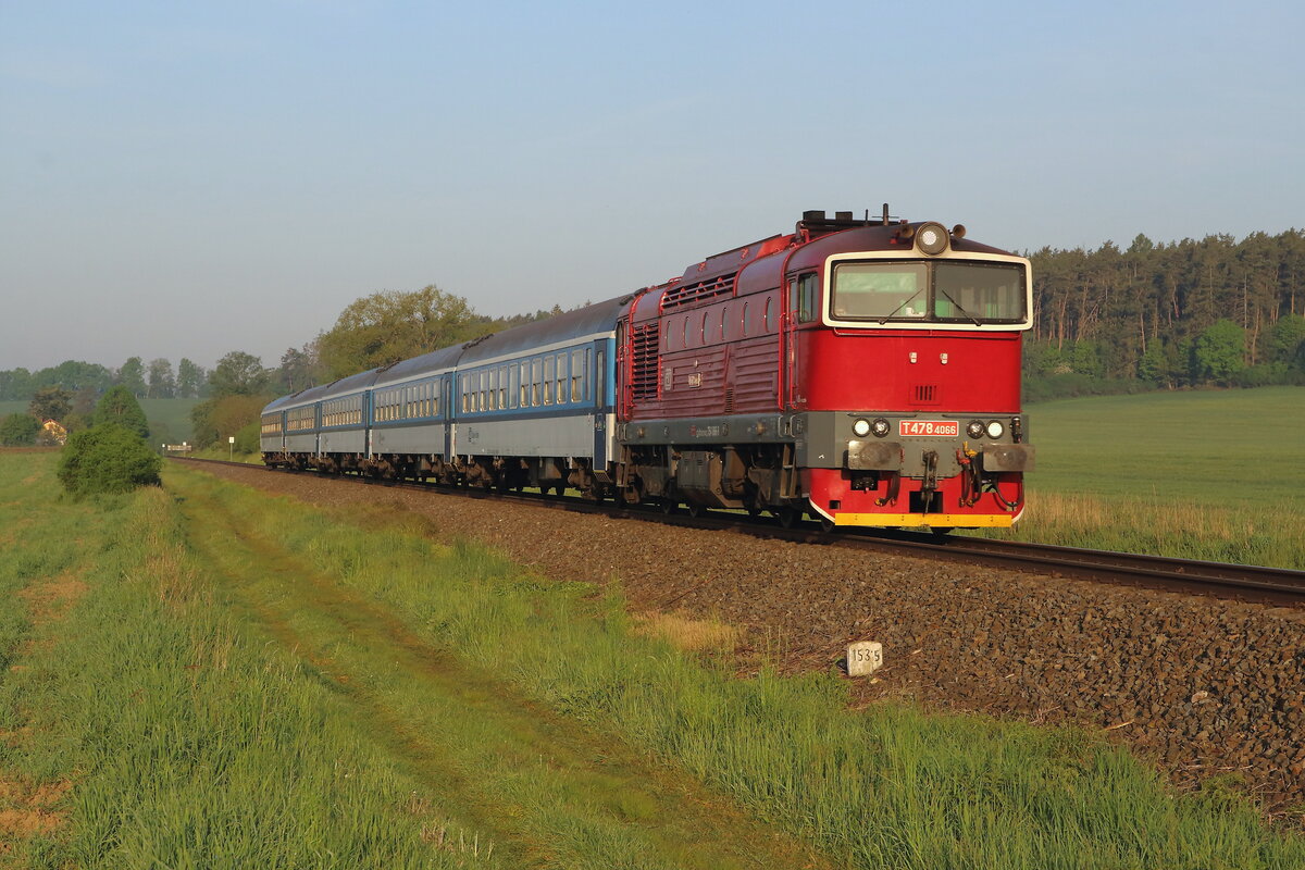 Morgentlicher Pendlerzug OS 7405 von Domazlice nach Plzen mit der "Blitzbrille" 754 057 Aufgenommen bei Milavce am 30.05.2023