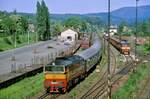 Hauptbahnhof Karlovy Vary am 5.6.1991: Vorne wartet die Taucherbrille 754065.