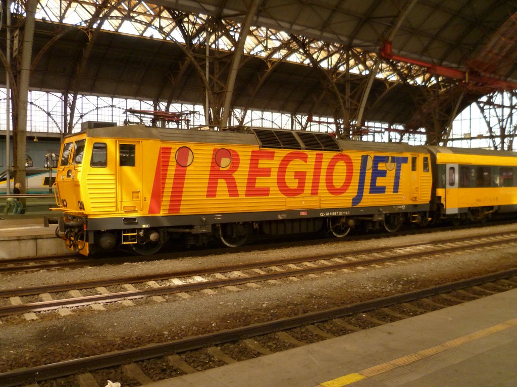 162 113 mit dem Regio Jet wartet am 26.08.12 in Praha hl.n. auf die Ausfahrt.