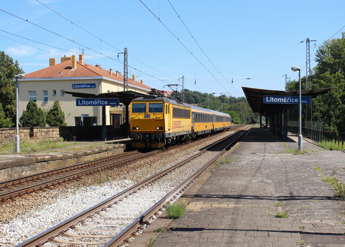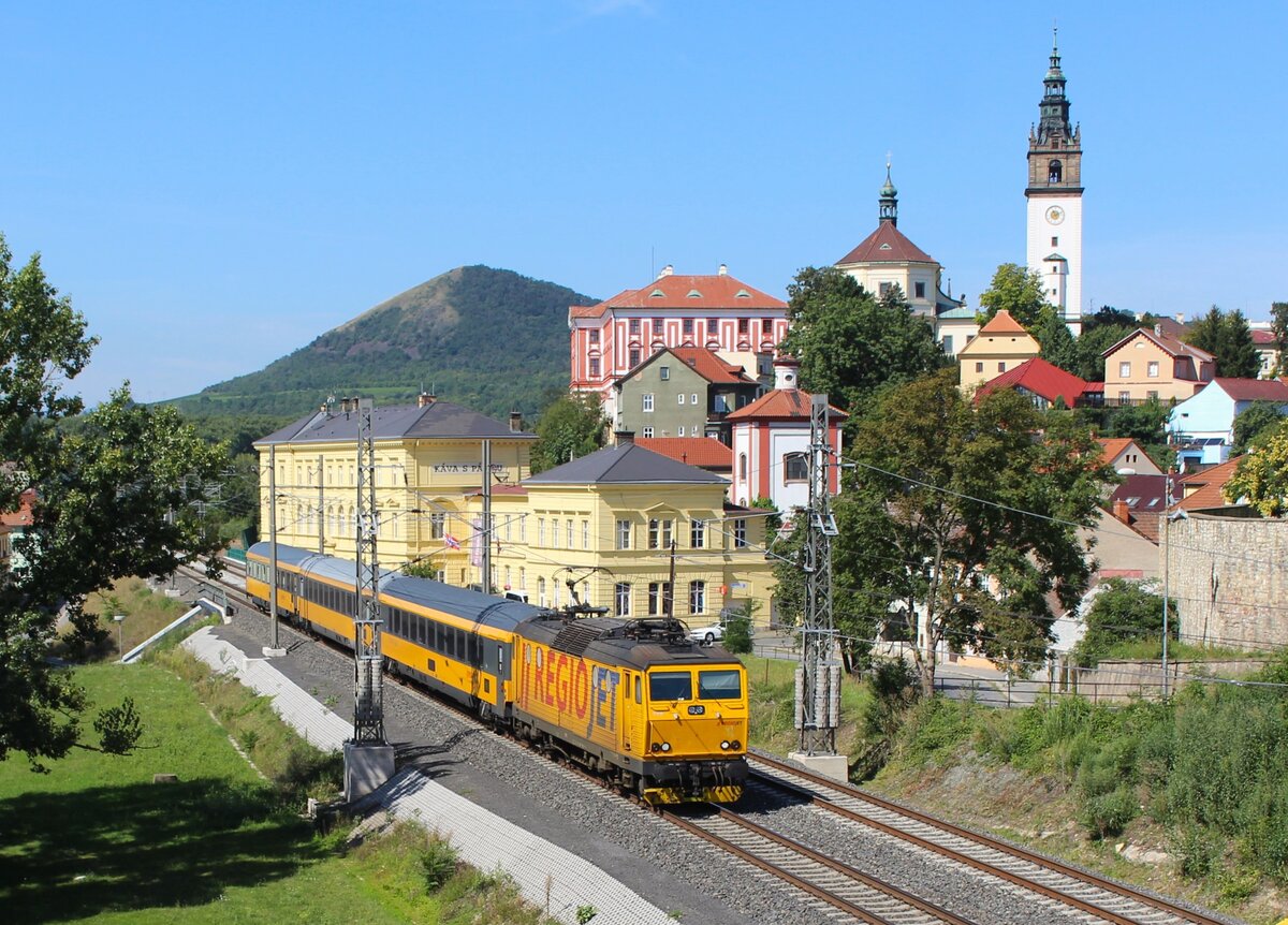 162 116 der Regiojet verlässt mit einem RJ am 31.08.24 Usti nad Labem hl.n. in Richtung Zapad.