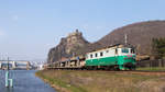 Nachdem sie mit einem Autozug von Ústí nad Labem západ aus die Elbe überquert hat, hat die inzwischen auch schon sehr betagte 123 013 den Bahnhof Ústí nad Labem-Střekov gleich erreicht (Oktober 2025). Die Klänge der Lok unter Vollast sind beeindruckende Hörgeräusche! Rainer Haufe