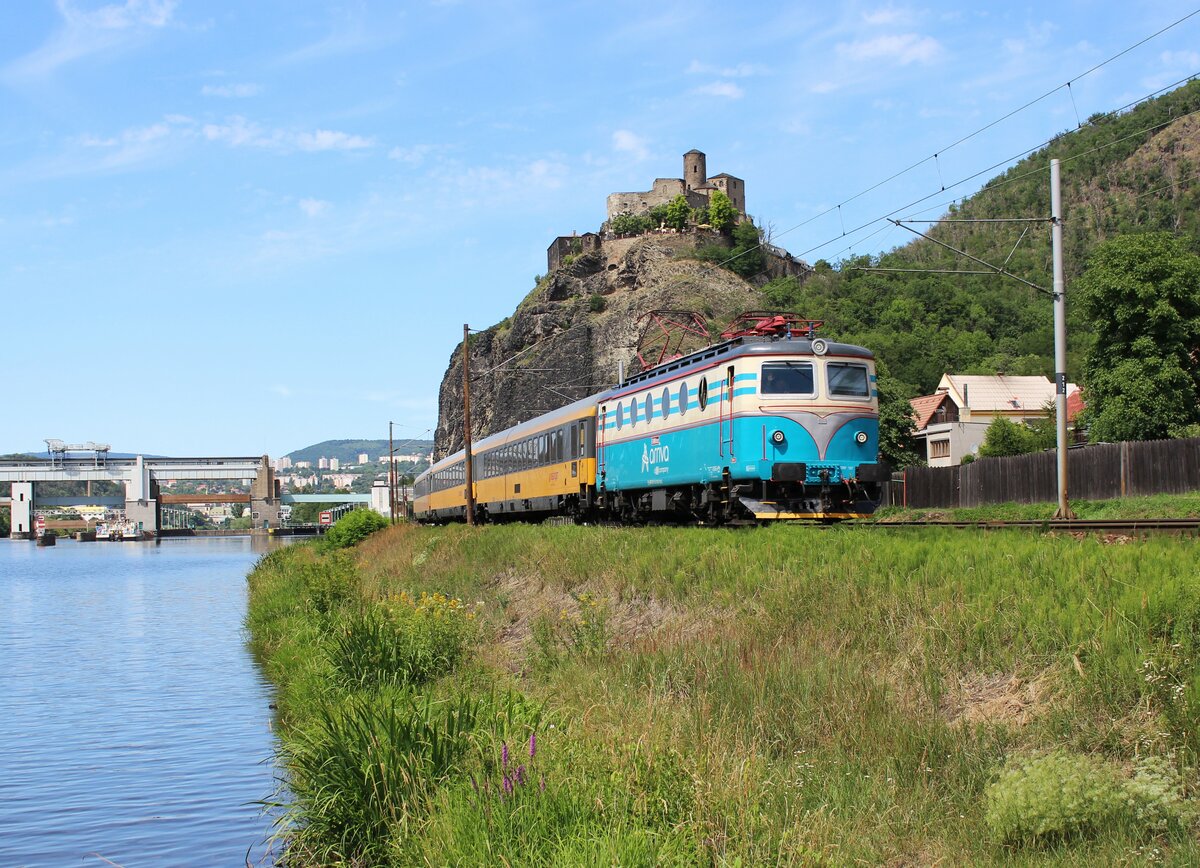 Retro Bobina E499 0042 mit einer unbekannten 742 am haken am 22.08.2019 auf dem Weg nach Usti nad Labem. Aufgenommen im Elbtal bei Cirkvice.