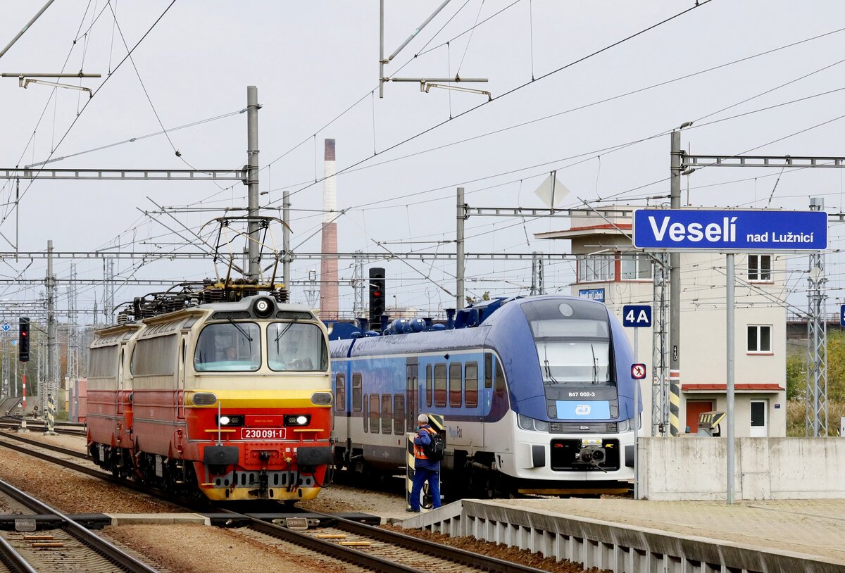 230 091-1 und 230 061-4 zu sehen am 09.02.23 mit einem leeren Kohlezug in Chotikov nach Nove Sedlo.