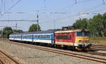 771 182-3 zog eine 363 mit einem Autozug durch Kadan Prunéřov. Denn am 27.08.23 war zwischen Kadan Prunéřov und Klášterec nad Ohří der Strom abgeschaltet.