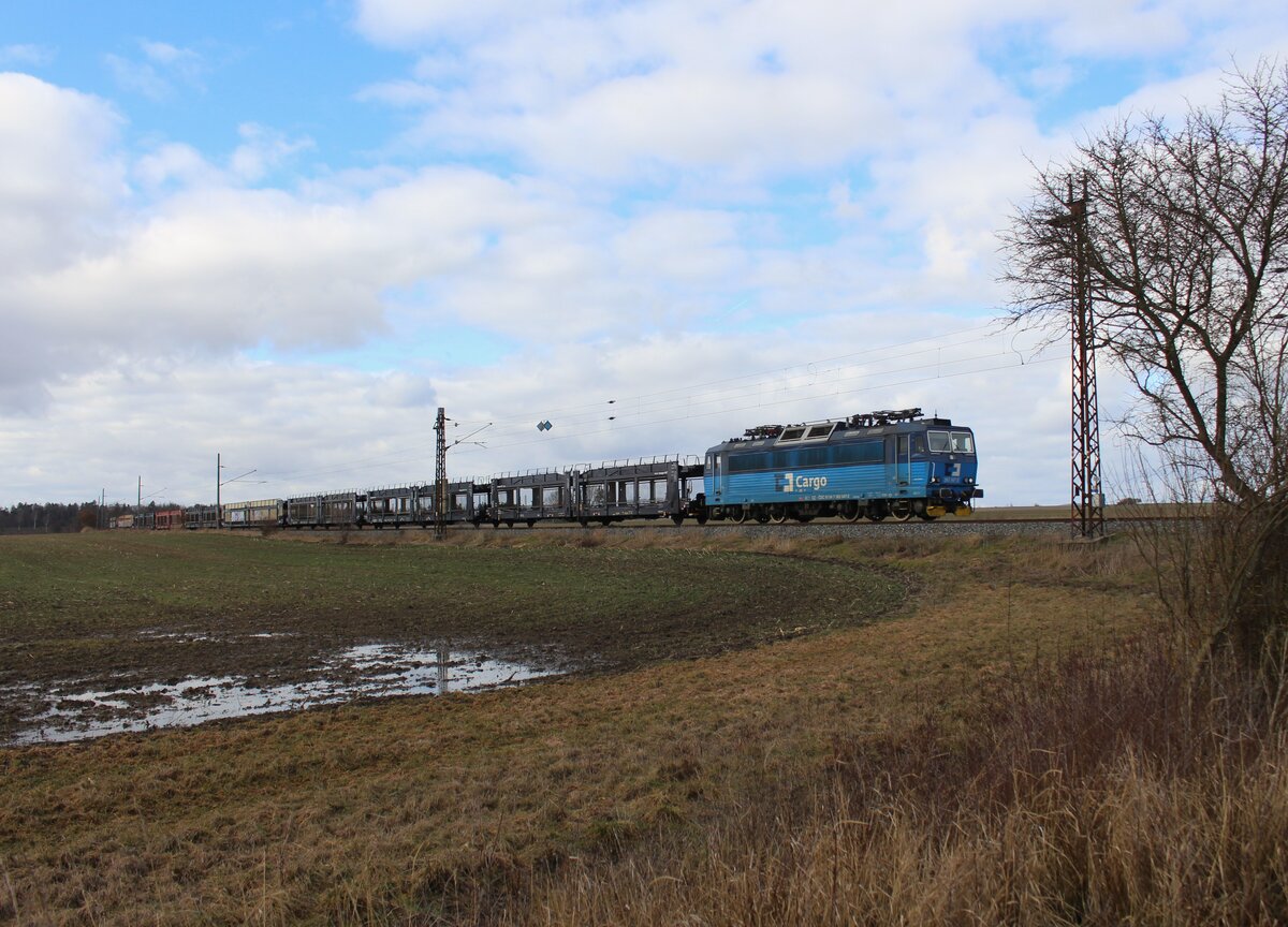 363 217 der CD Cargo schleppte am 31.08.24 einen STVA-Autozug über die Labebrücke in Usti n.L. in Richtung Zapad. Von der Vetruse aus fotografiert.