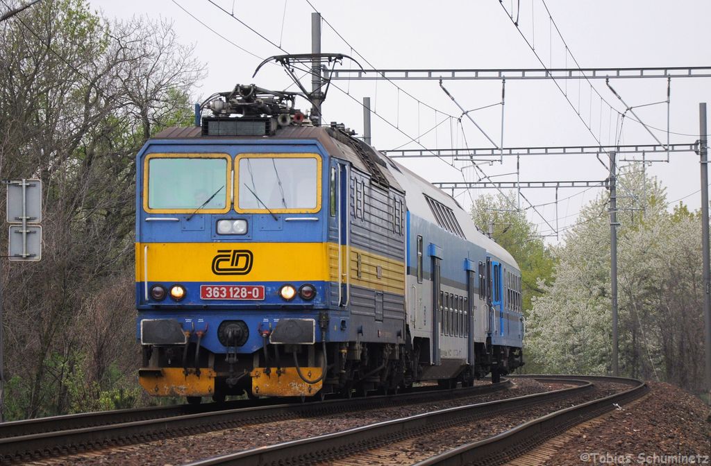 363 128 (CZ-CD 91 54 7 363 128-0) mit Os5909 von Kolín nach Havlíčkův Brod am 29.04.2013 bei Kolín
