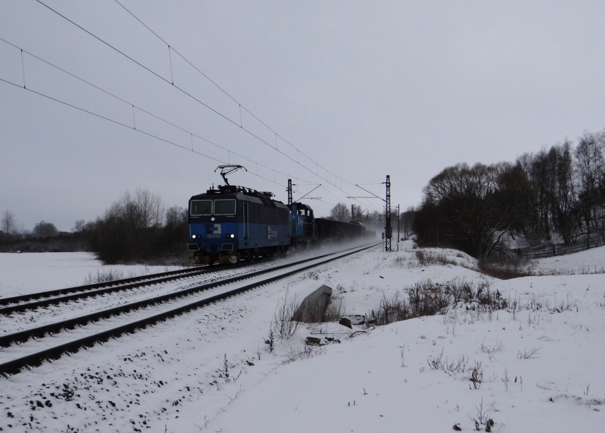 363 074-6 und 731 013 zu sehen bei Schneefall am 31.01.15 in Chotikov