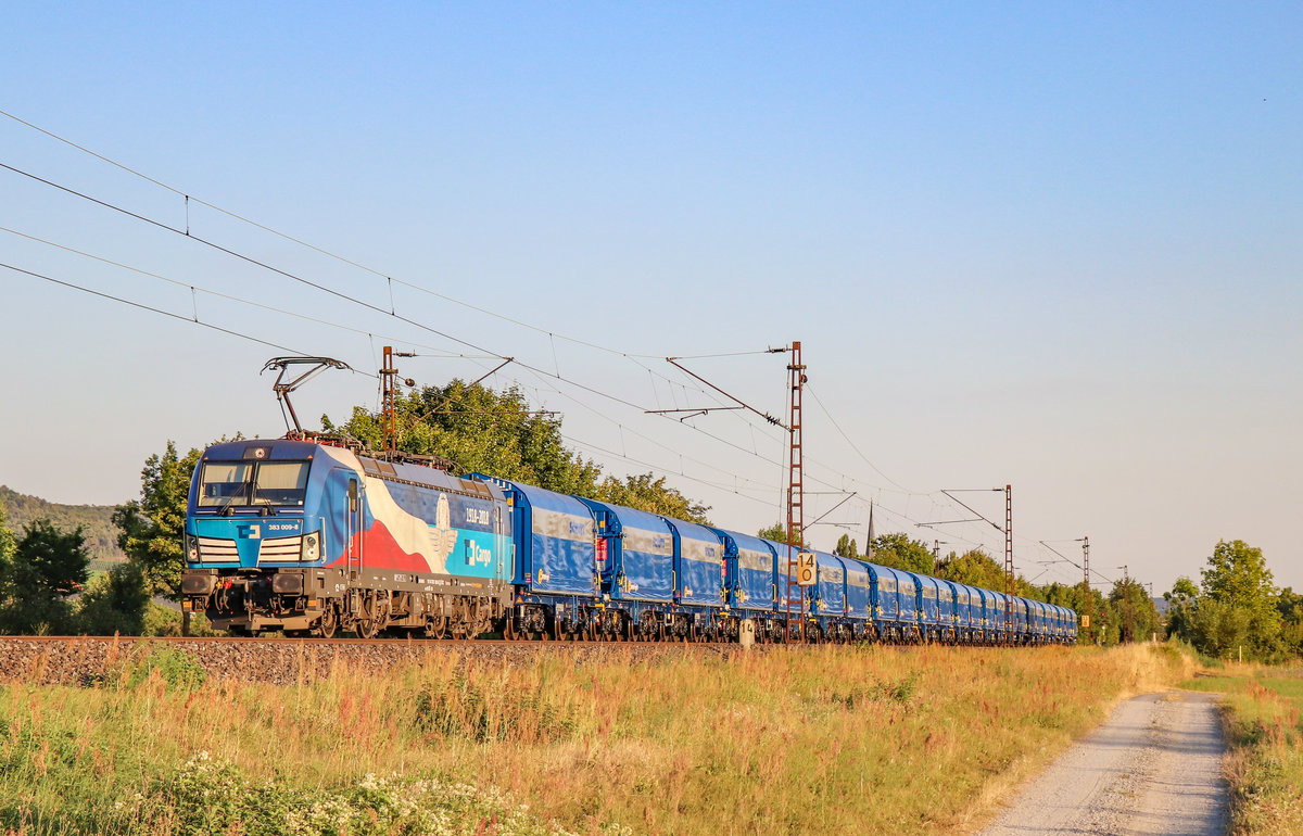 CD Cargo 383 009 mit nagelneuen Wagen am 05.08.2020 in Thüngersheim