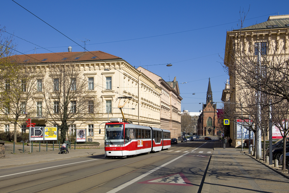 Am 3. April war K3R-N 1753 auf der Linie 5 unterwegs. Hier ist der Wagen in der Husova auf der Fahrt in Richtung Ústřední Hřbitov zu sehen. F. Lackner