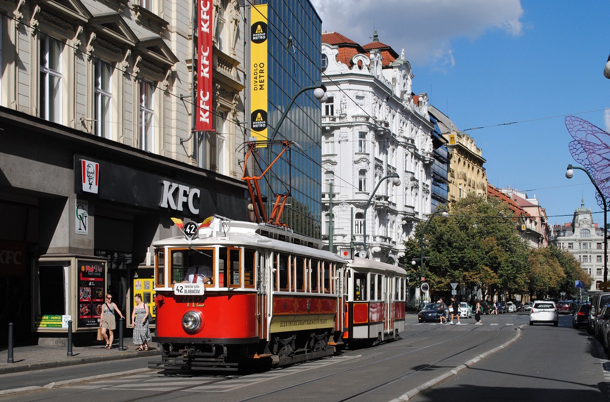Am 1. Juli 2025 war Ringhoffer DSM 2272 mit Beiwagen 1419 auf der Touristenlinie 42 im Einsatz. Hier zeigt sich die Garnitur auf der Chotkova zwischen den Haltestellen Chotkovy sady und Malostranská. F. Lackner