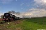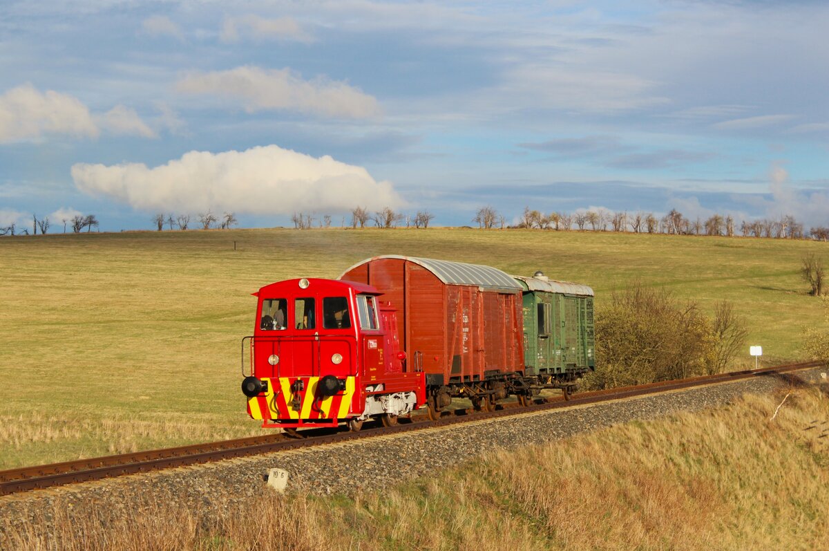 Trübes Herbstwetter am Kamm des Erzgebirges in Kovarska, wo am 10.10.2025 der Mn 53655 bei der Ausfahrt mit der 742 225 und 742 365 fotografiert wurde. Andreas Schreiber
